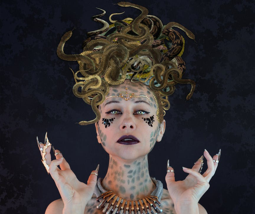 WOW – you are a seriously powerful creature: the Medusa. Medusa comes from Greek mythology, and you’ve probably heard of her as the one with snakes for hair that could turn people into stone with just a look.